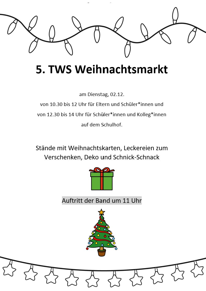 Am 2.12.2025 ist der Weihnachtsmarkt bei uns in der Schule!