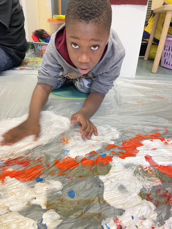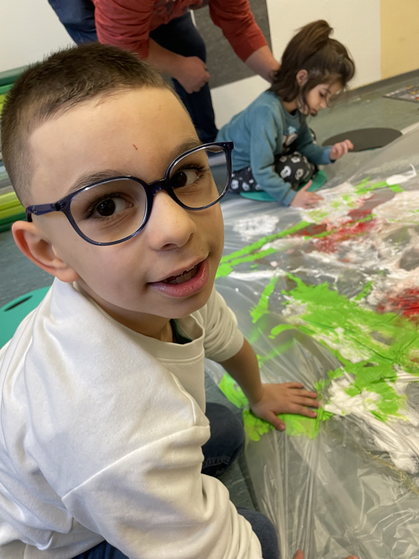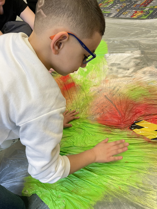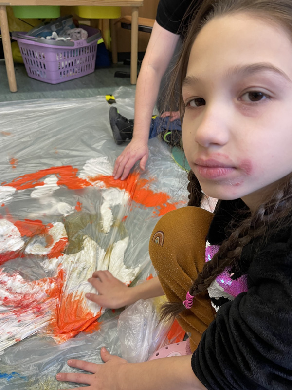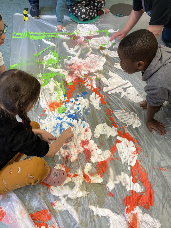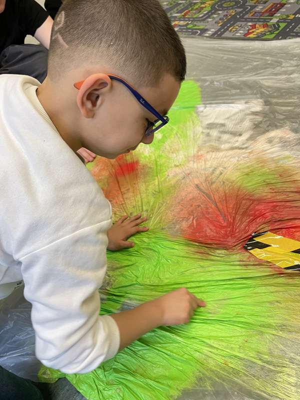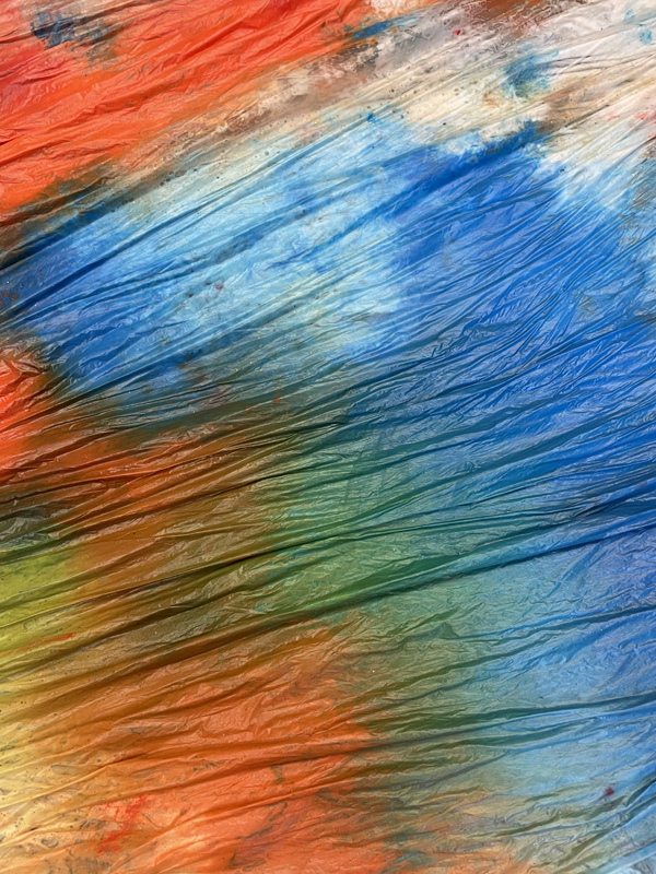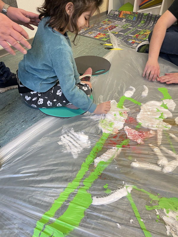 Aktionskunst der P7 mit viel Farbe und Rasierschaum - zwischen den Folien bleiben Hände und Kleidung sauber
