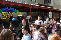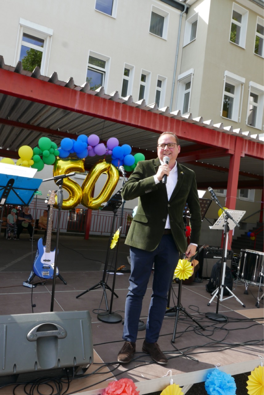 Die TWS feiert ihren 50. Geburtstag. Sogar der Oberbürgermeister kam zum Gratulieren und auch viele frühere Schüler:innen und Lehrer:innen.