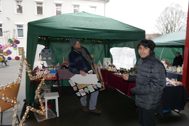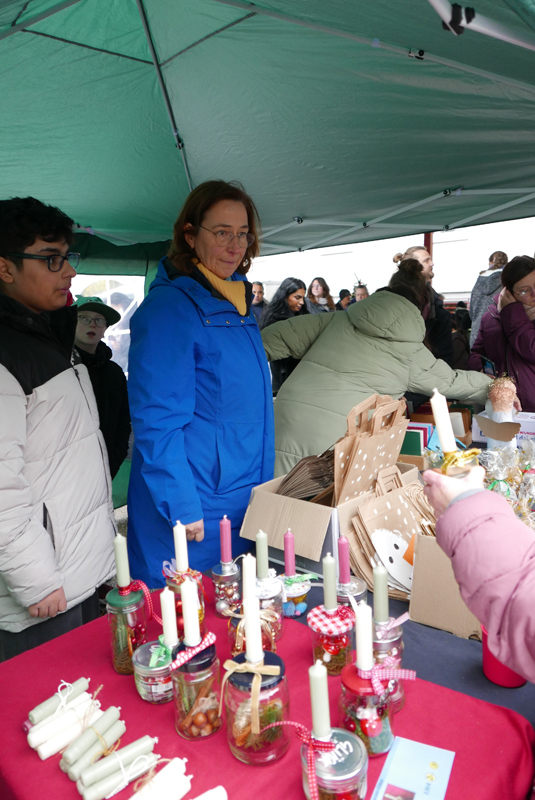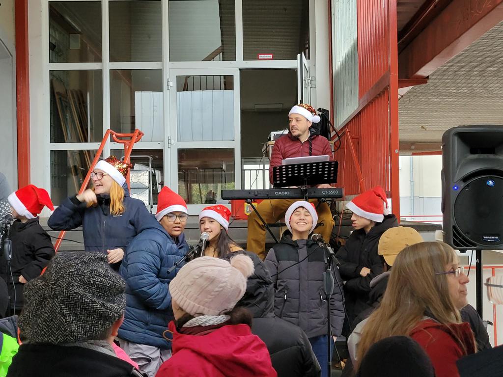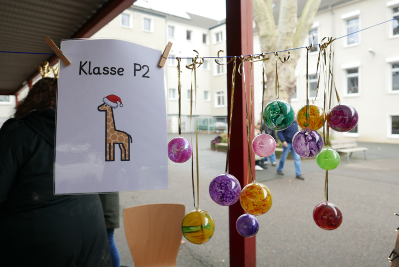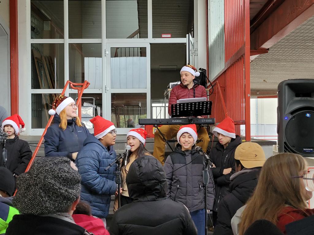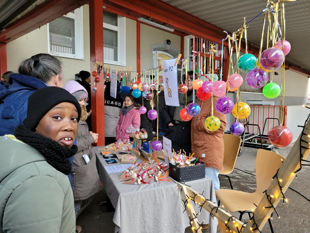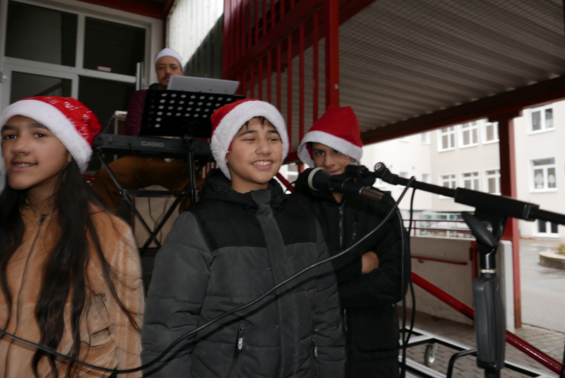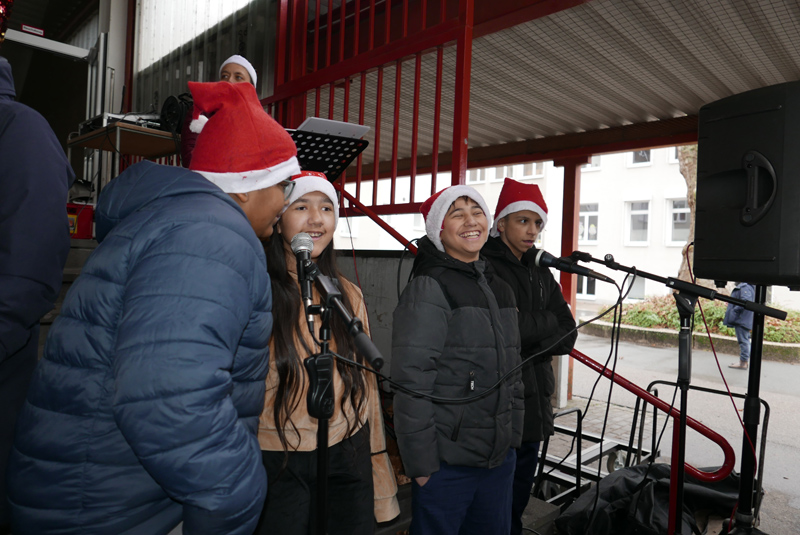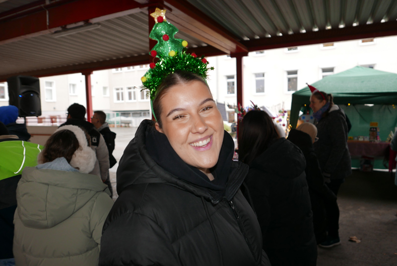 Am 2. Dezember fand ein Weihnachtsmarkt auf dem Schulhof statt. Viele Klassen und die Mädchen-AG haben Sachen verkauft und die Band hat Weihnachtslieder gesungen.