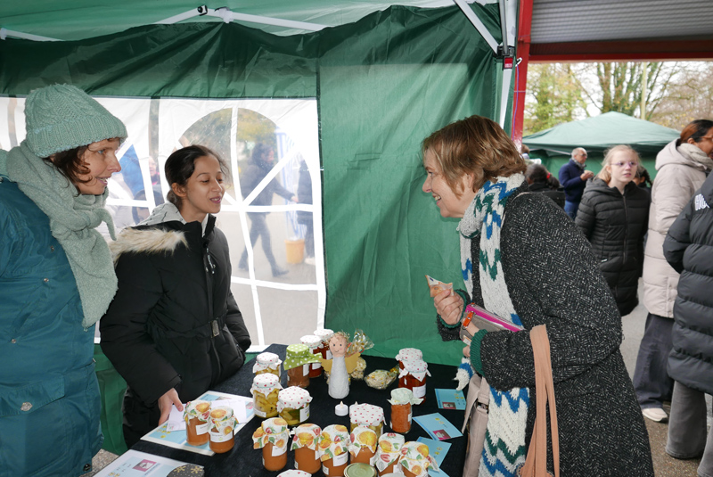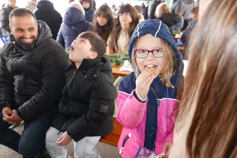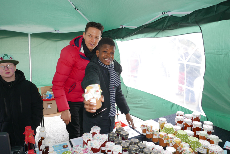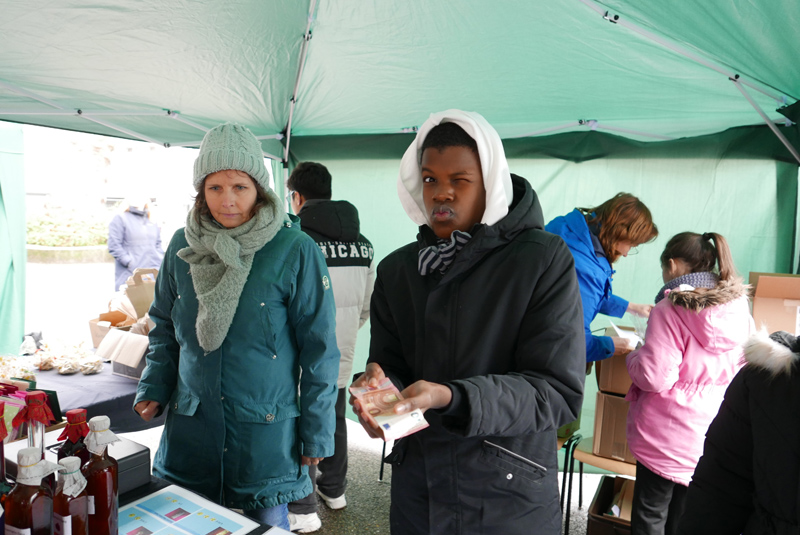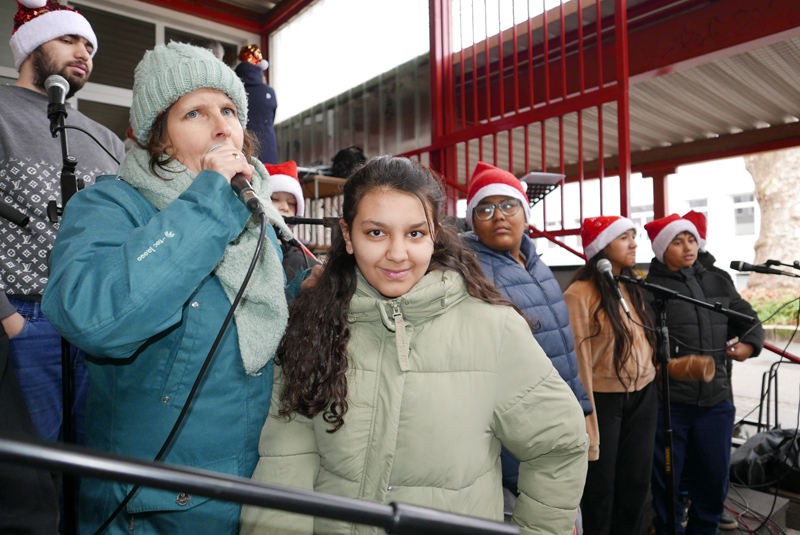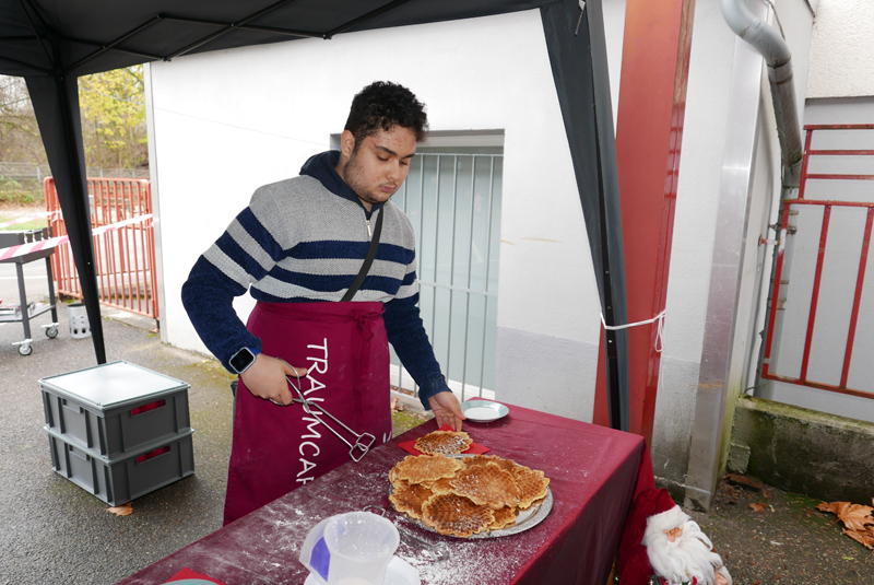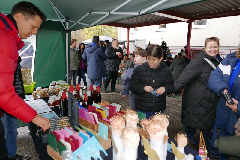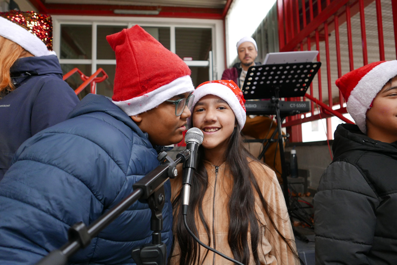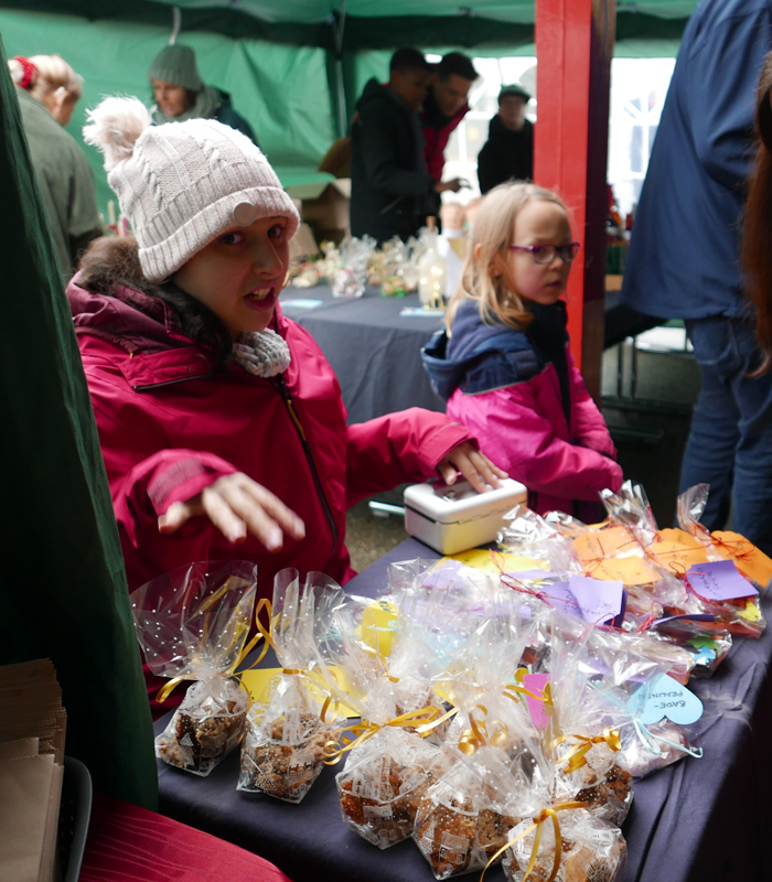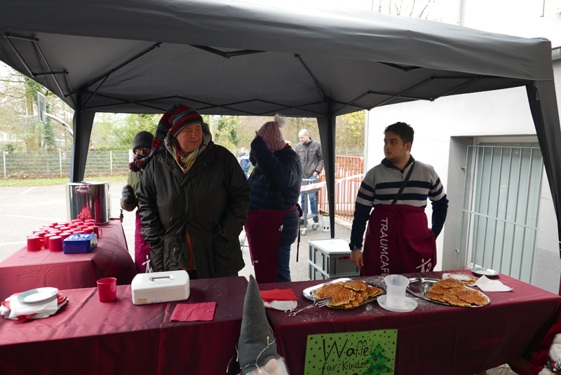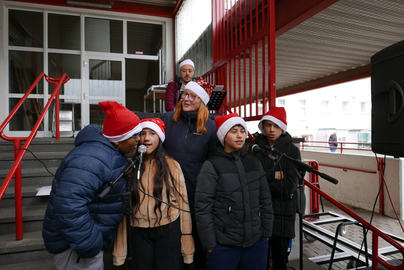 Am 2. Dezember fand ein Weihnachtsmarkt auf dem Schulhof statt. Viele Klassen und die Mädchen-AG haben Sachen verkauft und die Band hat Weihnachtslieder gesungen.